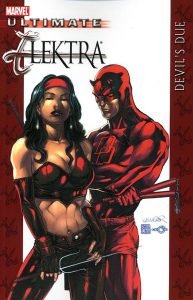 It has not been difficult for me to find graphic novels from the Ultimate Marvel series in my various used bookstores. I don’t have all of them by any means, but I’ve been able to pick up a lot just by keeping my eyes open. And then there’s the ambitiously numbered volume one of the Ultimate Elektra series, which seemed to have five or more copies available at every store I entered over the course of 2008. Which, despite the underlying snarkiness of that fact, is not to say that it was a bad book.